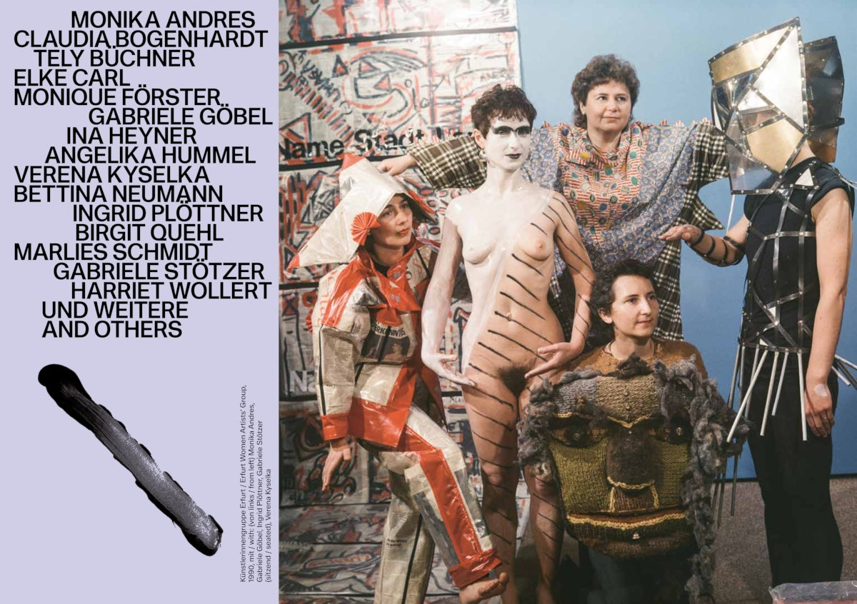The ERFURT WOMEN ARTISTS' GROUP remained active with personnel changes—Monika Andres, Tely Büchner, Elke Carl, Monique Förster, Gabriele Göbel, Ina Heyner, Verena Kyselka, Claudia Morca Bogenhardt, Bettina Neumann, Ingrid Plöttner, Marlies Schmidt, Gabriele Stötzer, Harriet Wollert and others—until 1994.