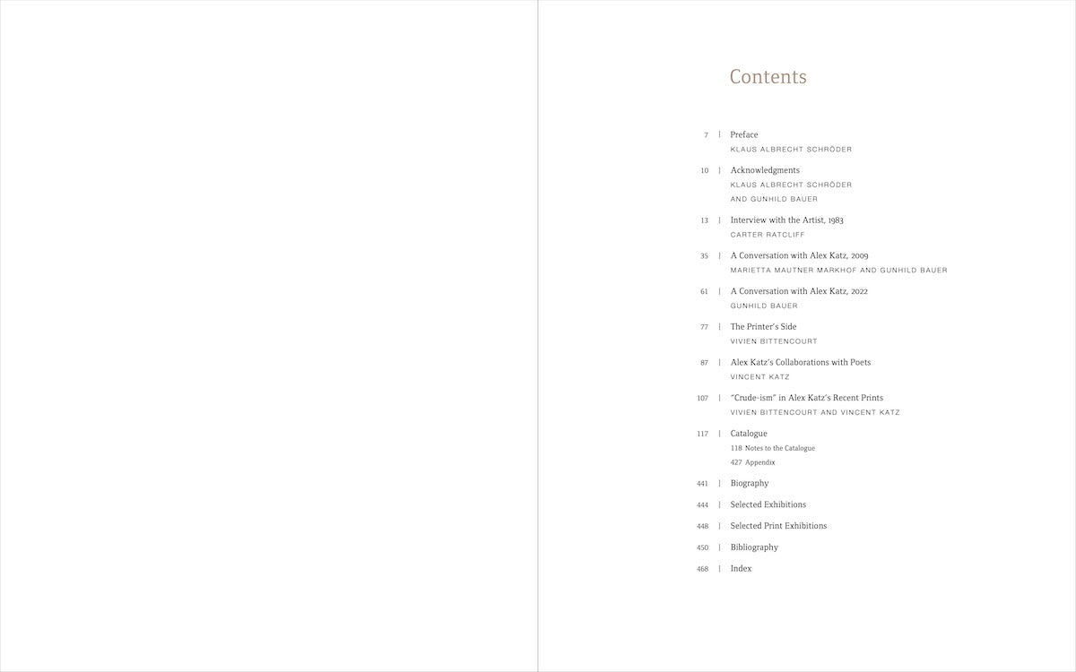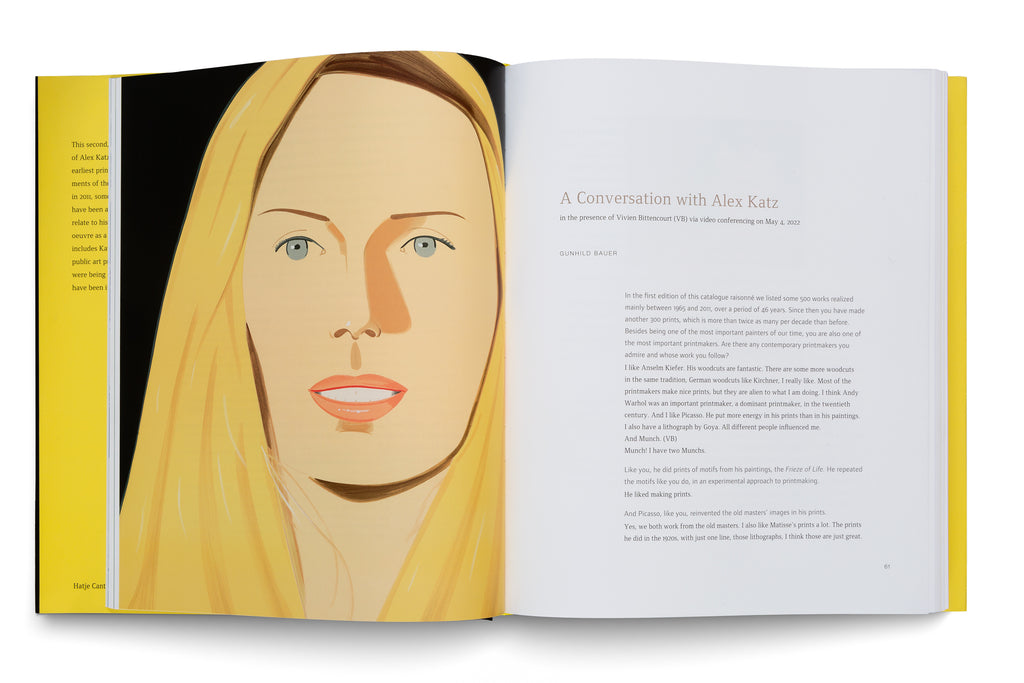 Before the rise of Pop Art proper, Alex Katz developed an iconic style of figurative painting in the early 1960s— influenced by film, television, and billboard advertising. Seemingly detached and incredibly stylish, he created portraits of the New York scene as well as idyllic landscapes. Printmaking plays an equally central role in Katz's work. He uses lithographs, etchings, silkscreens, woodcuts and linocuts to reproduce, reflect and further reduce his bold aesthetic, while retaining the radiant color characteristic for his paintings. Since the first edition in 2011, Katz has almost doubled his output of prints—this timely new edition includes his complete prints, cutout editions, artists' books, and also lists his works of applied art like book illustrations and public art projects. New essays and interviews with the artist give profound insights into the work of one of the foremost American artists of the present.