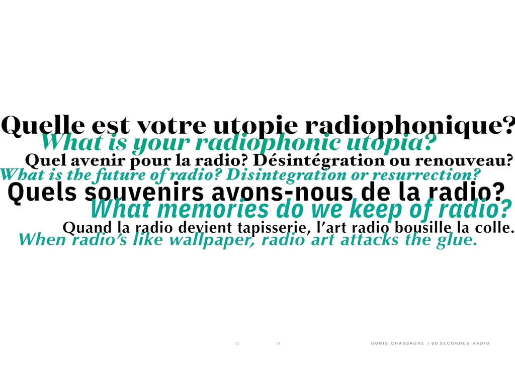 This book explores the central themes and techniques of artist-made radio, emerging from over 20 years of practice by a multitude of artists in the field. It brings to the page excerpts of long-form radio works from the world's largest exhibition of radio art, Radio Art Zone, a joint project by the artist duo Mobile Radio (Sarah Washington & Knut Aufermann) and the Luxembourg community station Radio ARA, which was broadcast for 100 days as part of the programme of the European Capital of Culture Esch2022. Interspersed with newly commissioned works ranging from micro-essays and texts on radio form, practice and poetics, to radio plays and illustrations, it is full of unique images which allow the imagination to expand outward into radio space. Radio Art Zone performs an exquisite transformation from airwaves to paper, providing a treasury of ideas and reflections about radio as art.