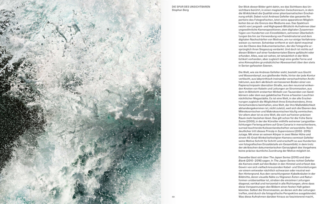 "Like a visitor from outer space, I try to take a look at the human habitat from the outside―curious, but also with horror." Exploring the possibilities of the photographic medium to the limits, Andreas Gefeller explores the liminal space where reality takes on the quality of a phantasmic phenomenon. From early documentary series to unusual perspectives and digital multi-image collages, this publication brings together previously unpublished photographs, key images from Gefeller's well-known series as well as his recent work. The retrospective reveals how the artist uses techniques ranging from extreme long- and overexposures to high-speed flashes to challenge our visual perception. Examining the human influence on nature, he creates images of an almost sublime abstract-painterly quality and then breaks the enchantment to reveal the hidden reality of the seemingly familiar.