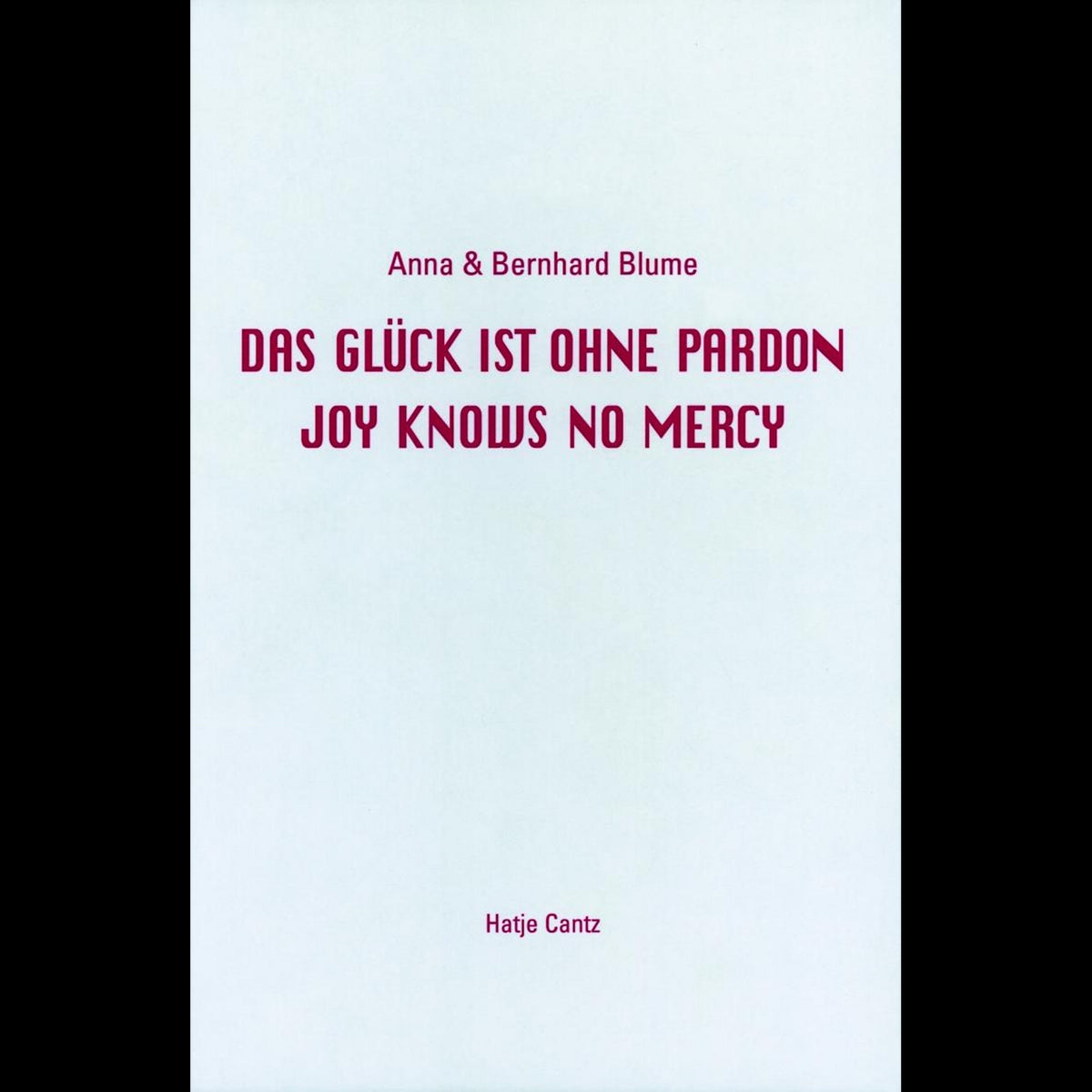 This book presents a collection of Polaroid images and Polaroid collages by Anna and Bernhard Blume produced from 1988 to 2000. The series, entitled Prinzip Grausamkeit (Principle of Cruelty), was a central focus of their work during the nineties. The Cologne artist-couple (born in 1937) referred to the first photos as mutual after the method of their creation. These were followed by a series of works that developed from restrained, experimental early works to a lusty, orgiastic massacre of physiognomic deformation and destruction, in which the artists' faces are tortured and distorted by trivial plastic objects, coat-hangers, and brightly colored household utensils. The honorable, classical genre of the artist's self-portrait is transformed into a sequence of shameless distortions that, in the words of Anna and Bernhard Blume, "put to rest the myth of the portrait and the autonomy of the subject it seeks to convey." In the interplay of the blood-red Polaroid images with statements inspired by the French philosopher Clément Rosset, we recognize the sarcastic denial of all comforting metaphysical theories and a villainous pleasure in catastrophe: "Joy knows no mercy." Exhibition schedule: Kunsthalle Göppingen, June 29 - August 10, 2003