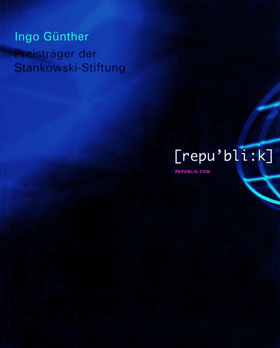 Ingo Günther's works operate on a knife-edge between art and journalism, art and politics. They analyse and react to crisis situations, rendering these both visible and transparent, they intervene in the issues of the day. Interviews and researches in numerous refugee camps across the world formed the basis of his work Refugee Republic in which the artist proposes a supra- national and supra-territorial model state, a virtual republic, where the world-wide population of refugees represents and governs itself. In addition to World Processor - a continually expanding installation that started in 1989 and consists of over 100 lit-up globes illuminating problem spots worldwide - when the Gulf War broke out in 1990 Günther started a series of flags that soberly yet suggestively reflects political structures. REPUBLIK.COM, with essays by leading authors, is the first documentation of the three main areas of work that Ingo Günther - winner of the Stankowski Stiftung Prize in 1997 - has been pursuing since the late eighties. The artist: Ingo Günther, born 1957. Studied ethnology and cultural anthropology in Frankfurt. From 1978 studied at the Staatliche Kunstakademie in Düsseldorf with Fritz Schwegler and Günther Uecker. From 1983 a master pupil with Nam June Paik. Numerous exhibitions, including the Venice Biennale in 1984, documenta VIII in 1987. 1997 winner of the ZKM/Siemens Media Art Prize. Lives mainly in New York.