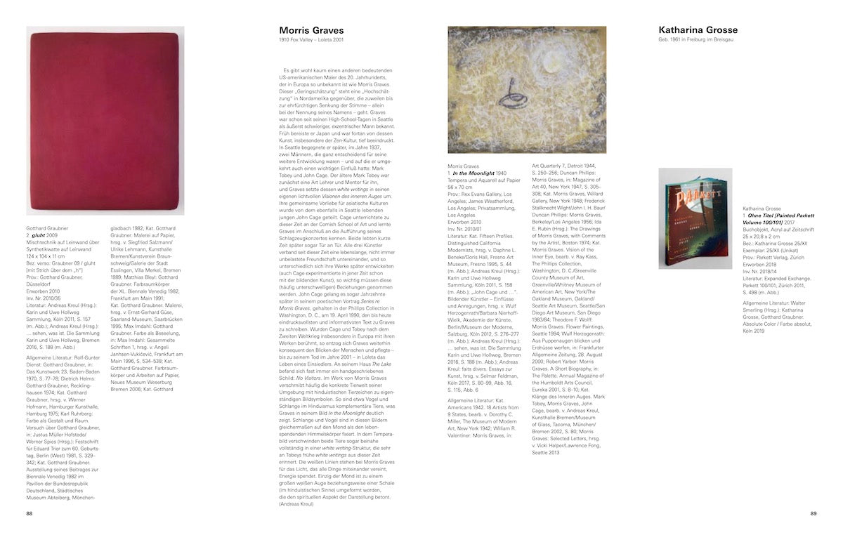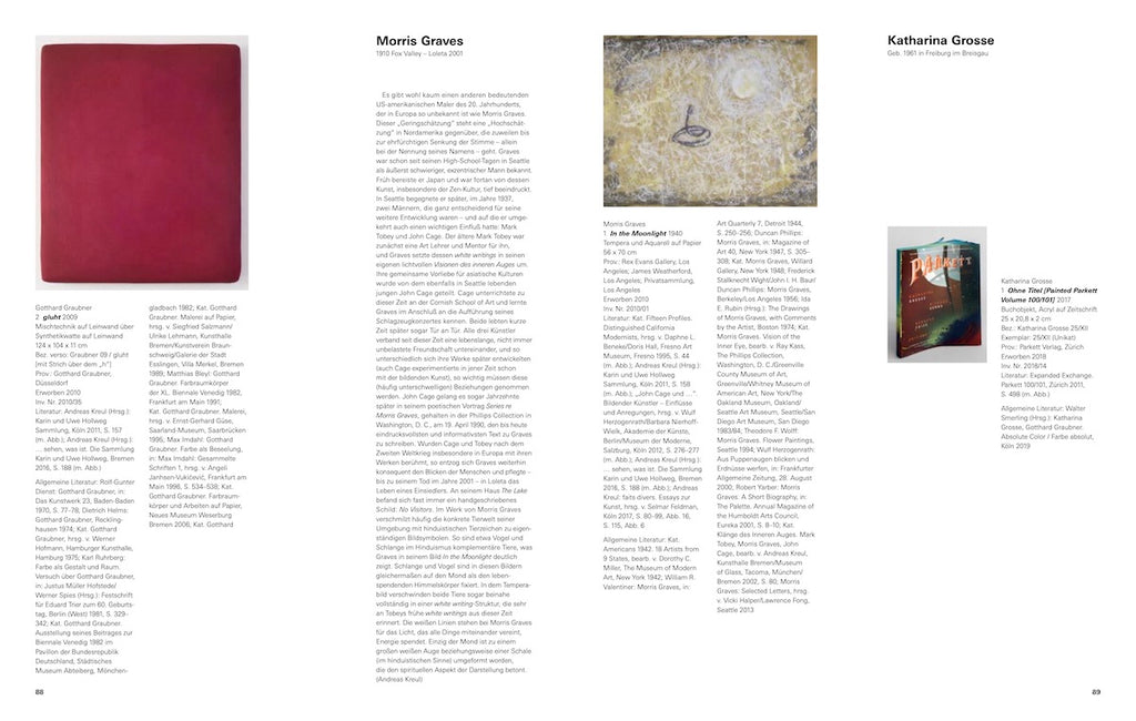 Since the early 1970s, the collection of the Karin and Uwe Hollweg Foundation has evolved. It includes works of the 20th and 21st centuries by artists such as Wols, Mark Tobey, André Thomkins, John Cage and Dieter Roth. With an initial focus on abstract art, the collection later expanded—not least through acquaintance and friendship with the artists—into other areas such as Pop Art, Nouveau realisme, and Fluxus, with works by Emmett Williams, Richard Hamilton, and Daniel Spoerri. This publication, published on the occasion of the 50th anniversary of the collection, looks back at its history and serves as an updated scholarly inventory catalogue of all the works.