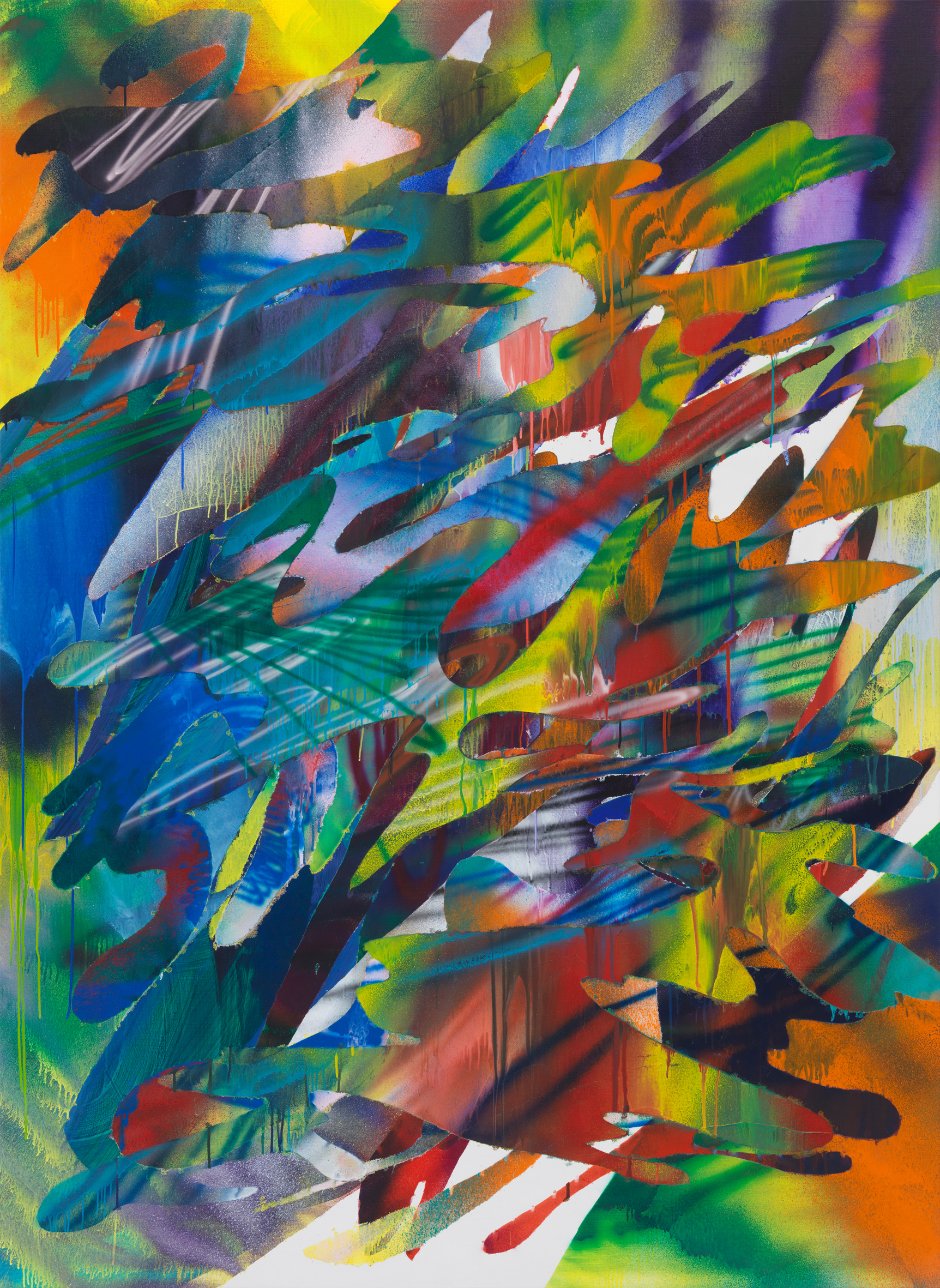 KATHARINA GROSSE (*1961, Freiburg i. Br.) is one of the most distinguished contemporary painters working today. After studying painting at the art academies in Münster and Düsseldorf (1982- 1990), it was in 1998 that she first used a spraying technique for an installation at the Kunsthalle Bern. This became a decisive moment in her work and was essential in her ongoing experiments with the properties of paint and the status of painting today. She lives in Berlin and New Zealand.
