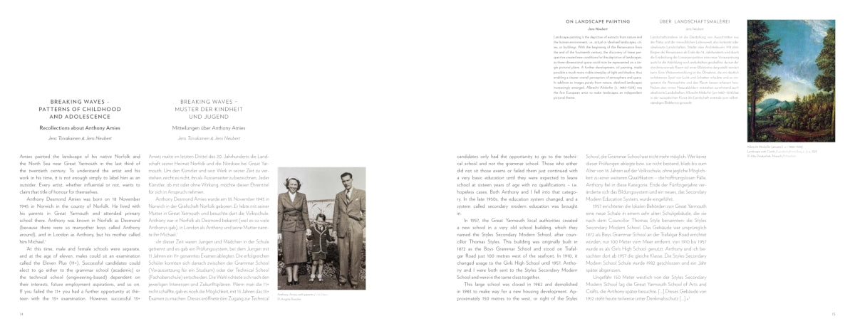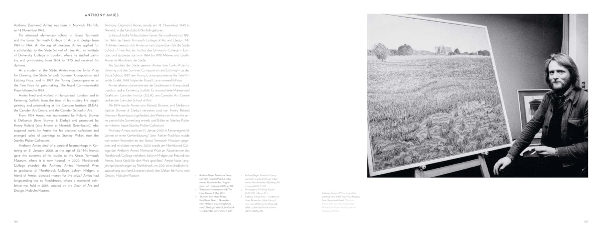 Anthony Amies' paintings assert a classical conception of painting. From the mid 1970s, the British artis pursued a radical counter-concept to the art of his time with a stylistically peculiar landscape painting. They are calm and enigmatic pictures that do without any scandal. In large-scale drawings and oil paintings, he plays with the "blot" technique: Amies abstracts the landscapes to convey an idea rather than a realistic image. The reduction to land and sea is a reflection on England and the loss of its individual landscapes to the monotony of industrial and urban proliferation and sprawling housing estates. In this idiosyncrasy―the assertion of the genre of landscape painting and in the painterly quality of the works as a contribution to the assertion of painting in art―lies the importance of this English painter.
