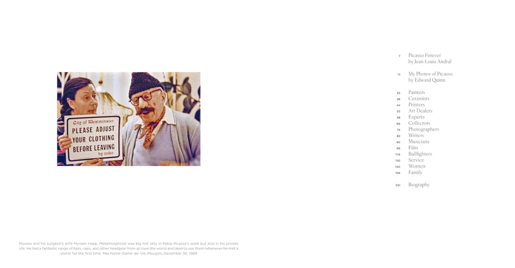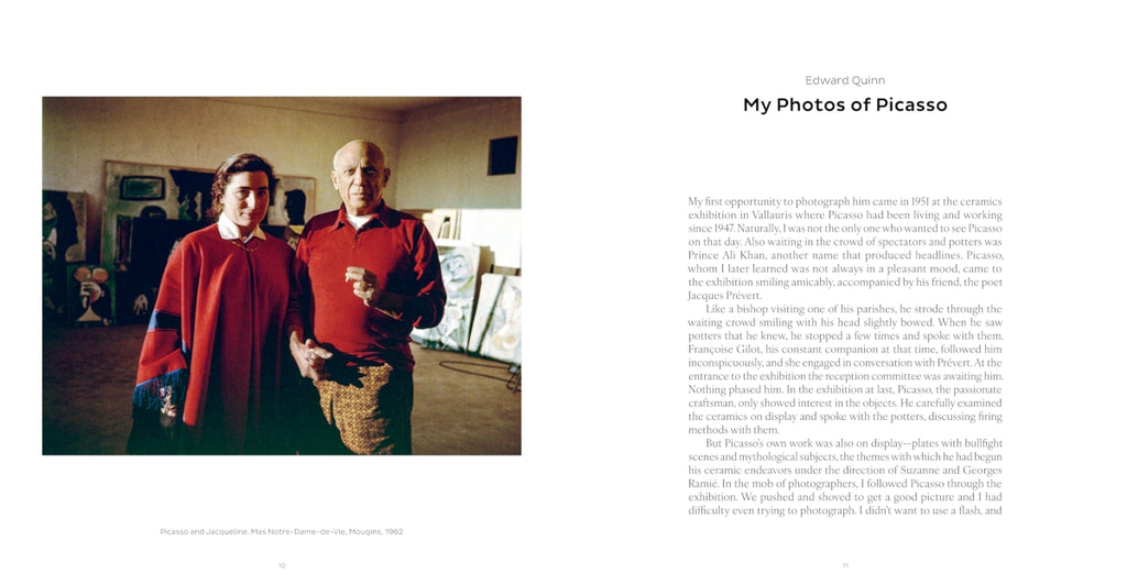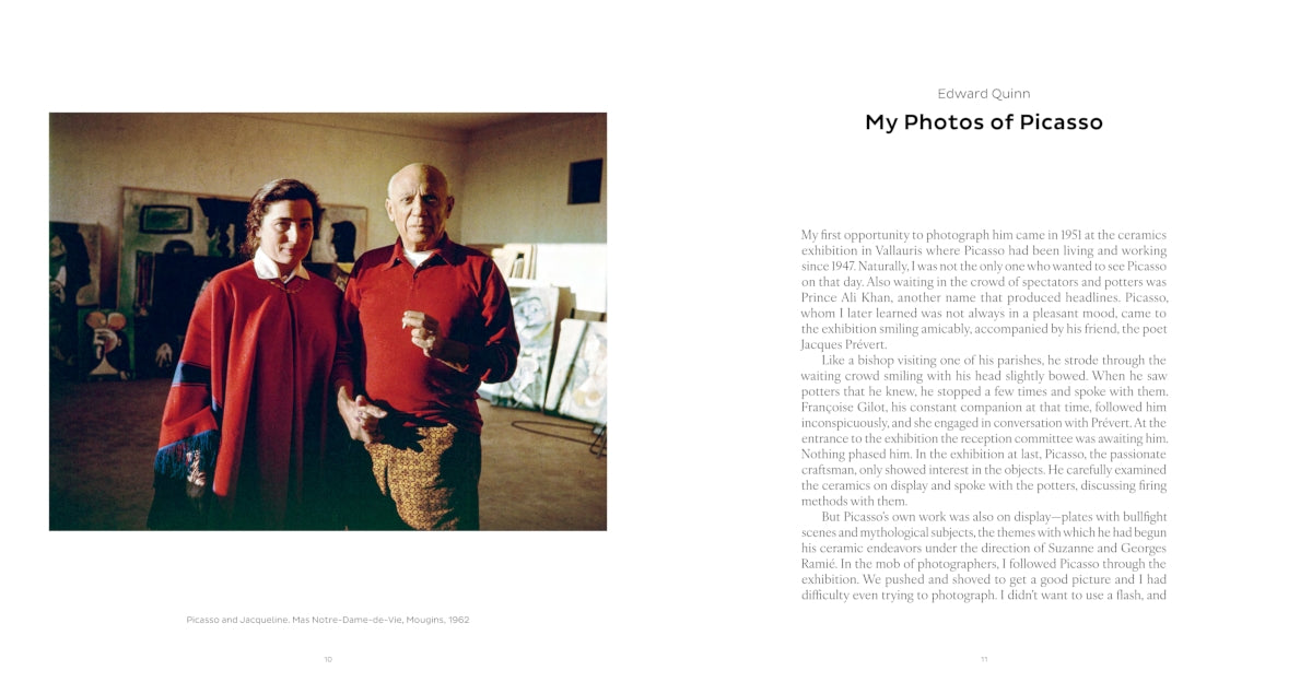 "He doesn't bother me," Picasso commented of the photographer Edward Quinn, after the latter had first photographed him at work in the ceramics studio in the early 1950s. This was undoubtedly one of the reasons why Quinn was allowed to accompany the artist with his Leica for over 20 years from 1951 onwards during his time on the Côte d'Azur: in the studio, in private with his family, with artist friends, at the bullfight, out and about, with lovers or simply at the hairdresser's. The Quinn Archive holds a large stock of photographs of great intimacy, showing Picasso in everyday life and documenting his idiosyncratic character, his humor, and his enthusiasm in an amiable and light-hearted way. Edward Quinn did not use a tripod with his camera, nor did he illuminate the room artificially; his main concern was to capture genuine pictures. As a viewer, you find yourself on eye level with the protagonists. Almost like in the street photography we know today, there is a captivating sense of the casual moment. This book is a magical selection of photographs from Picasso's everyday life and shows the famous artist in many unexpected situations.